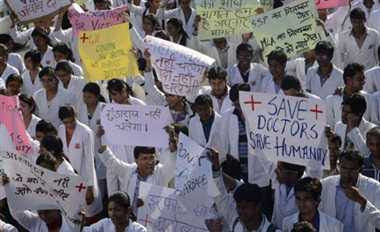 सामूहिक रूप से इस्तीफे सौंप दिए। हड़तालियों पर दबाव बनाने के लिए पुलिस ने आइएमए अध्यक्ष डॉ. आरती लाल चंदानी व उनके पति डॉ. देवेंद्र लाल चंदानी के खिलाफ मरीज न देखने पर गैर इरादतन हत्या का मामला चमनगंज एवं बर्रा थाने में दर्ज कराया। दूत के रूप में गए विशेष सचिव और महानिदेशक ने प्राचार्य डॉ. नवनीत कुमार से बातचीत की और कानुपर के हैलट अस्पताल की इमरजेंसी का जायजा लिया। मेडिकल छात्रों द्वारा समस्या का निदान किए जाने की मांग पर उन्होंने कहा कि पहले चिकित्सीय सेवाएं शुरू करें, उसके बाद कोई बातचीत होगी। पिछले तीन दिनों में इलाज के अभाव में 16 मौतों से प्रदेश में हड़कंप मच गया है। उधर, काशी हिंदू विश्वविद्यालय स्थित चिकित्सा विज्ञान संस्थान के रेजीडेंट डॉक्टरों ने सोमवार को हड़ताल का मुद्दा बदलते हुए एम्स की मांग कर दी।